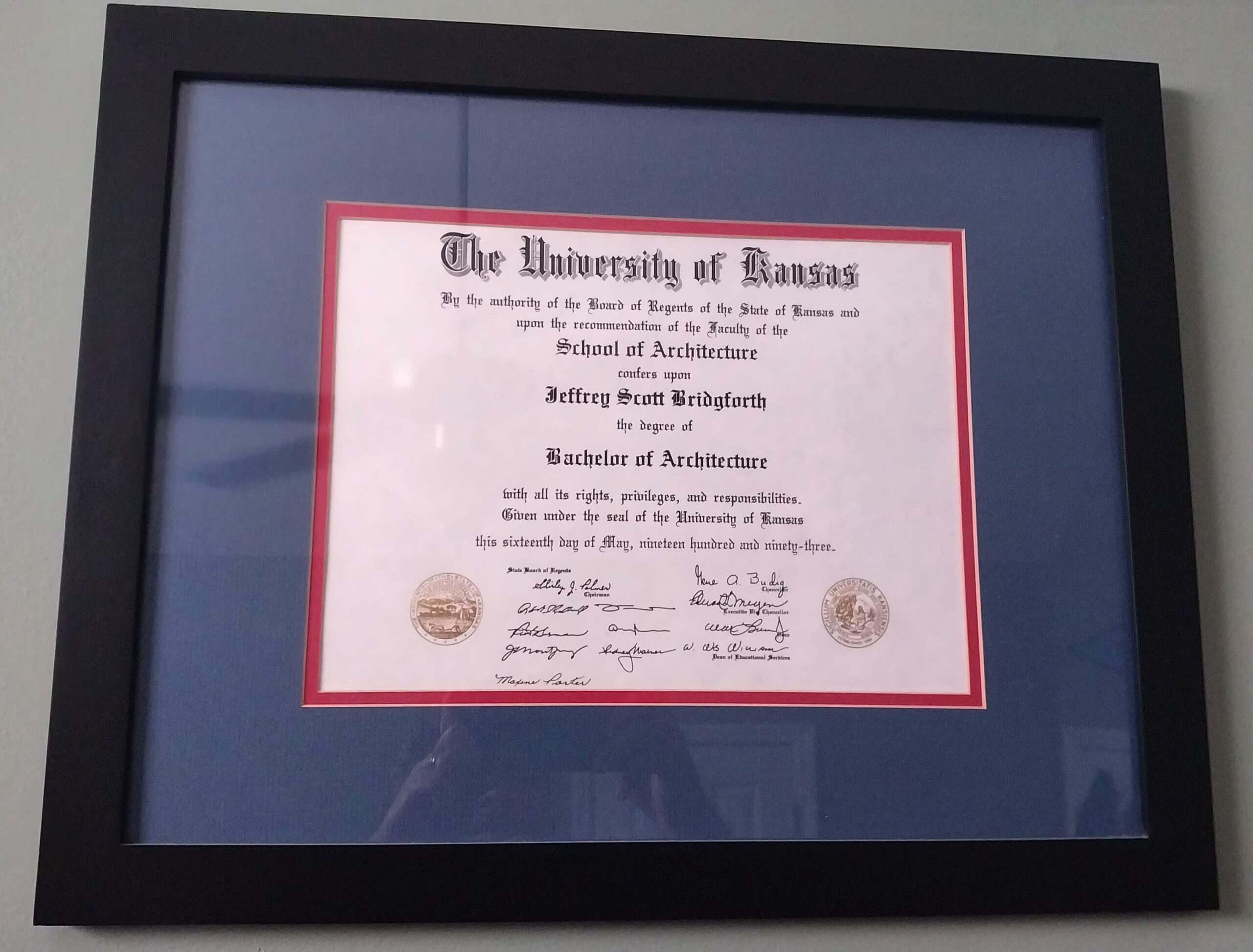 My diploma from the University of Kansas. I got my degree in architecture. I never practiced but I felt like I came back around full-circle to a creative career in web design and development.